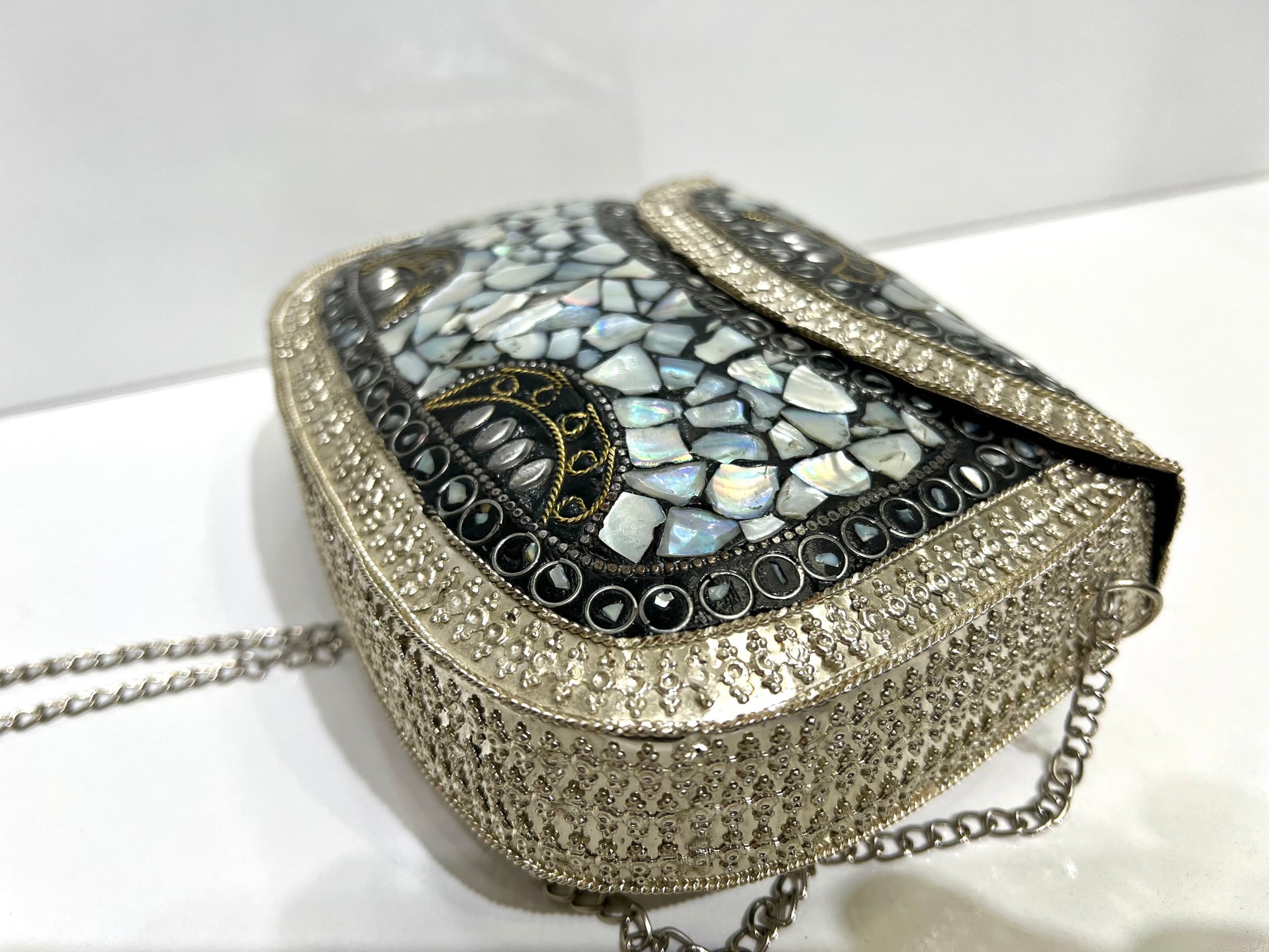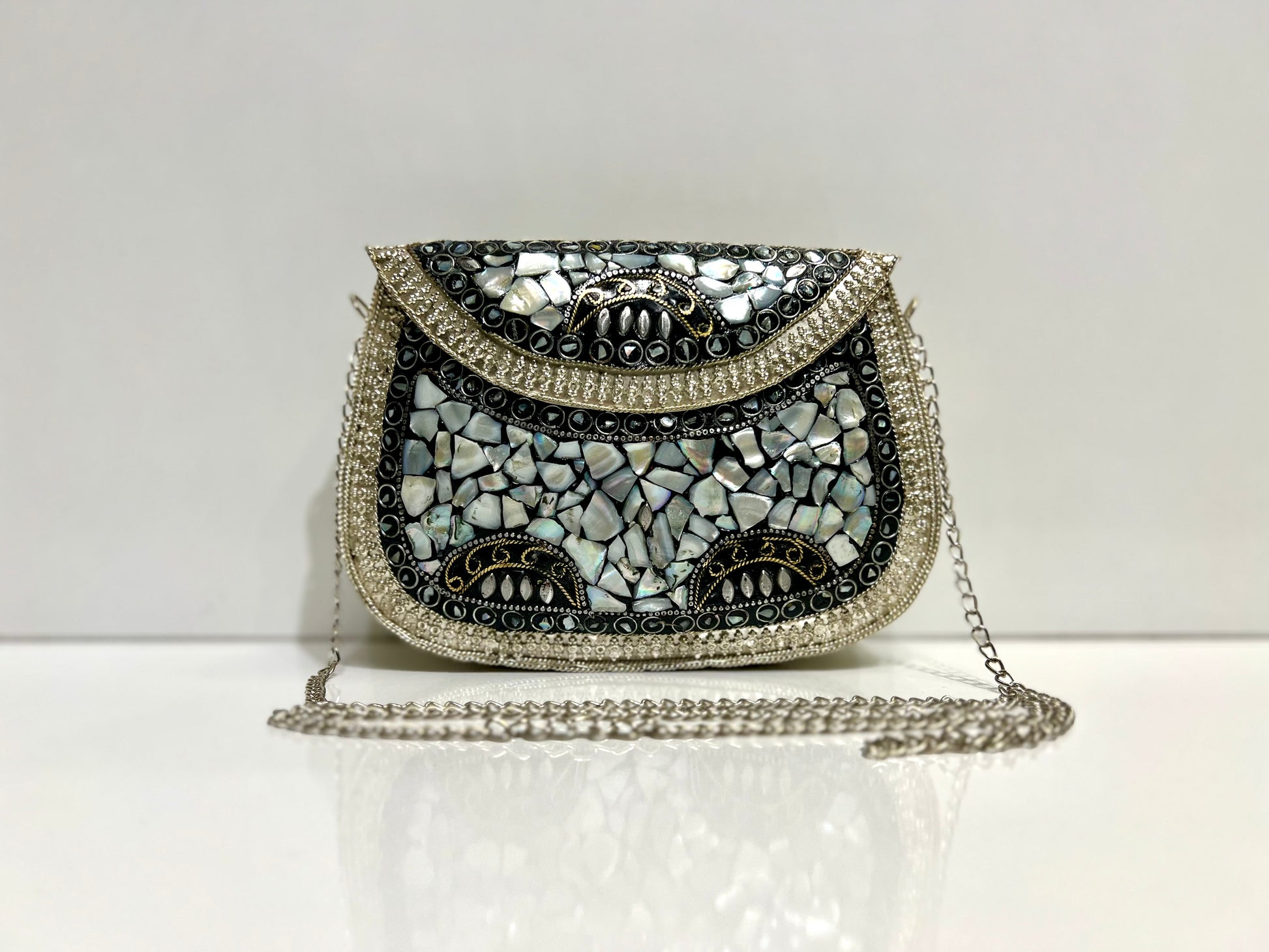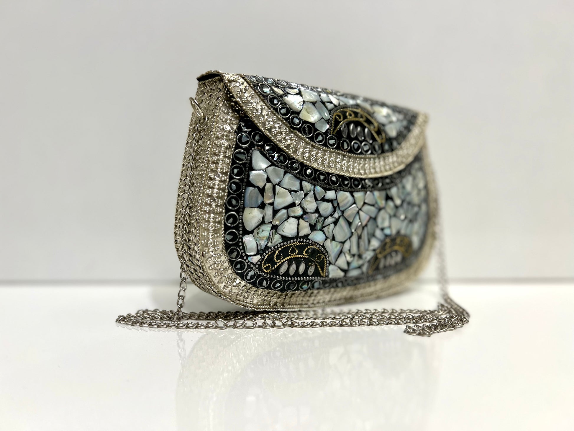 Ce joli Sac à bandoulière est le sac parfait pour tout style. Conçu avec des effets argentés et marbrés, il ajoute une touche unique à votre look chic et bohémien. Fabriqué à la main, il est à la fois élégant et original. Parfait pour toutes occasions.